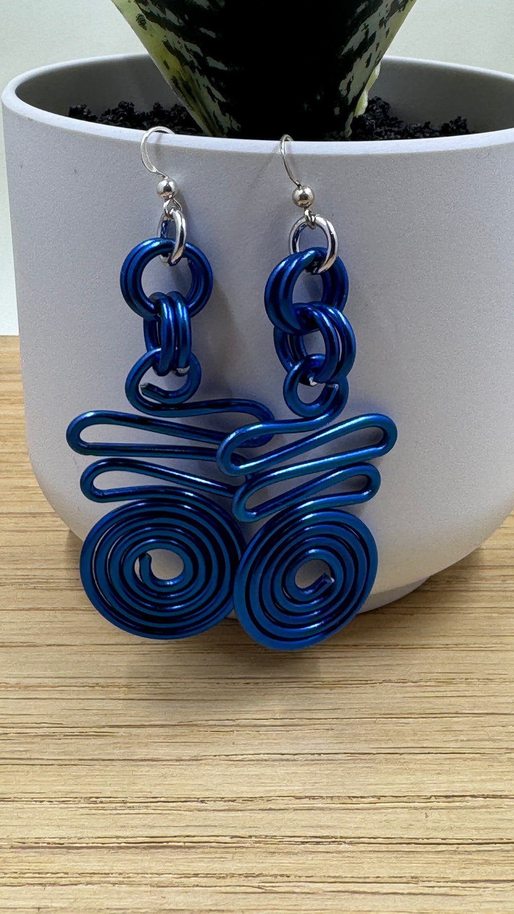 Blue Aluminum Wire Earrings with sterling silver ear wire